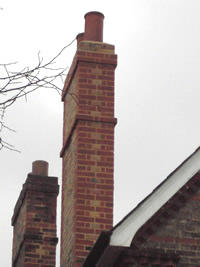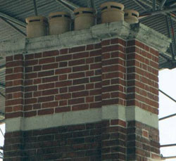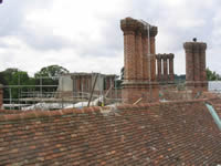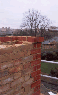 octagonal chimneys at Chilham castle showing weather damage bricks,
