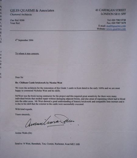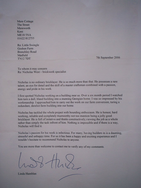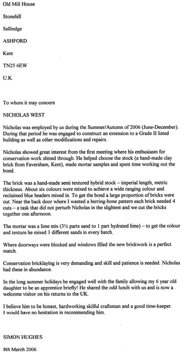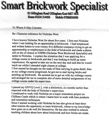 A character reference that give to me by Neil Smart that worked