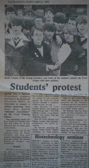 The image opposite shows a News paper cutting in 1985 when
